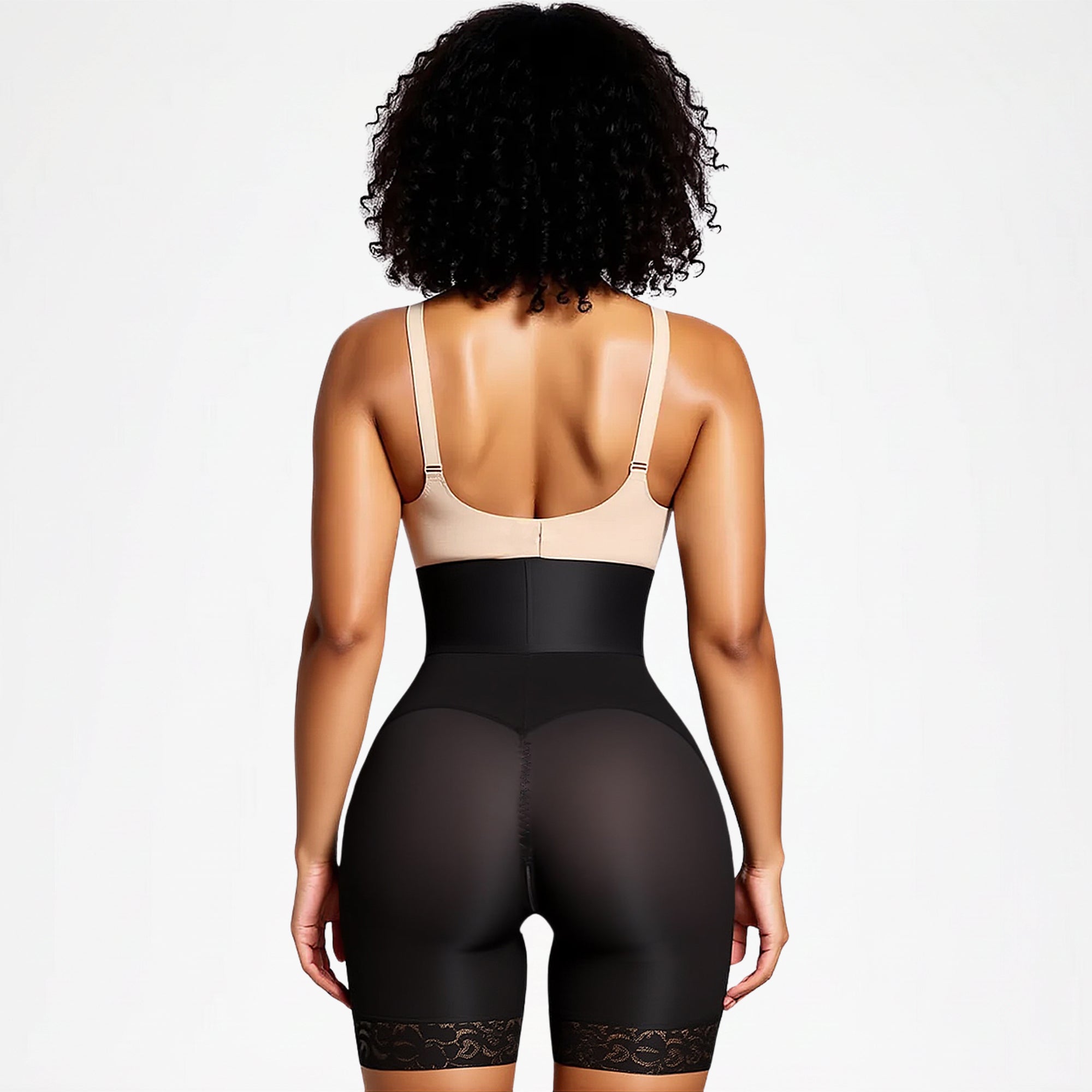 De hoge tailleband en de compressiepasvorm zorgen voor een flatterende look en bieden voldoende dekking, terwijl de stretchstof je volledige bewegingsvrijheid geeft.