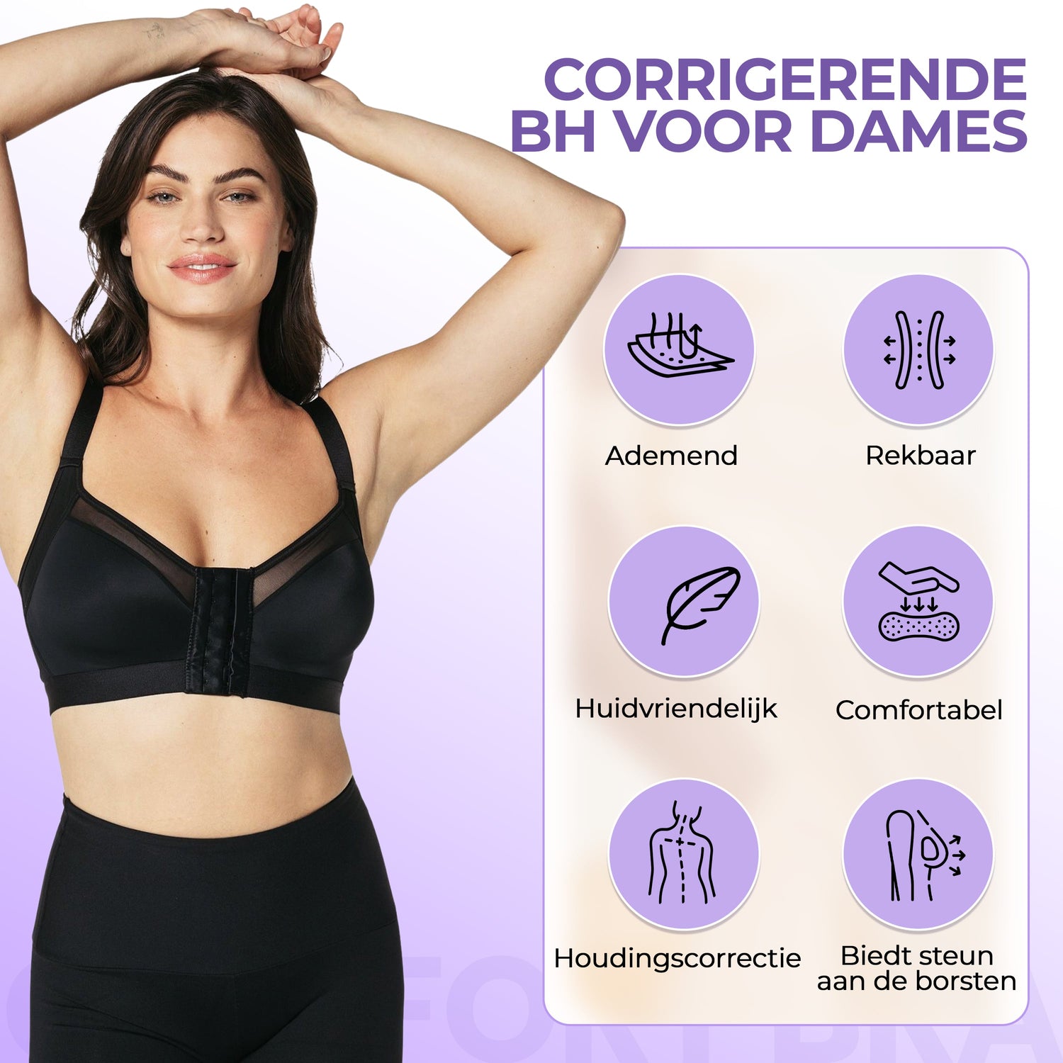 De Corrigerende BH met voorsluiting is perfect voor vrouwen die ondersteuning zoeken zonder concessies te doen aan comfort.